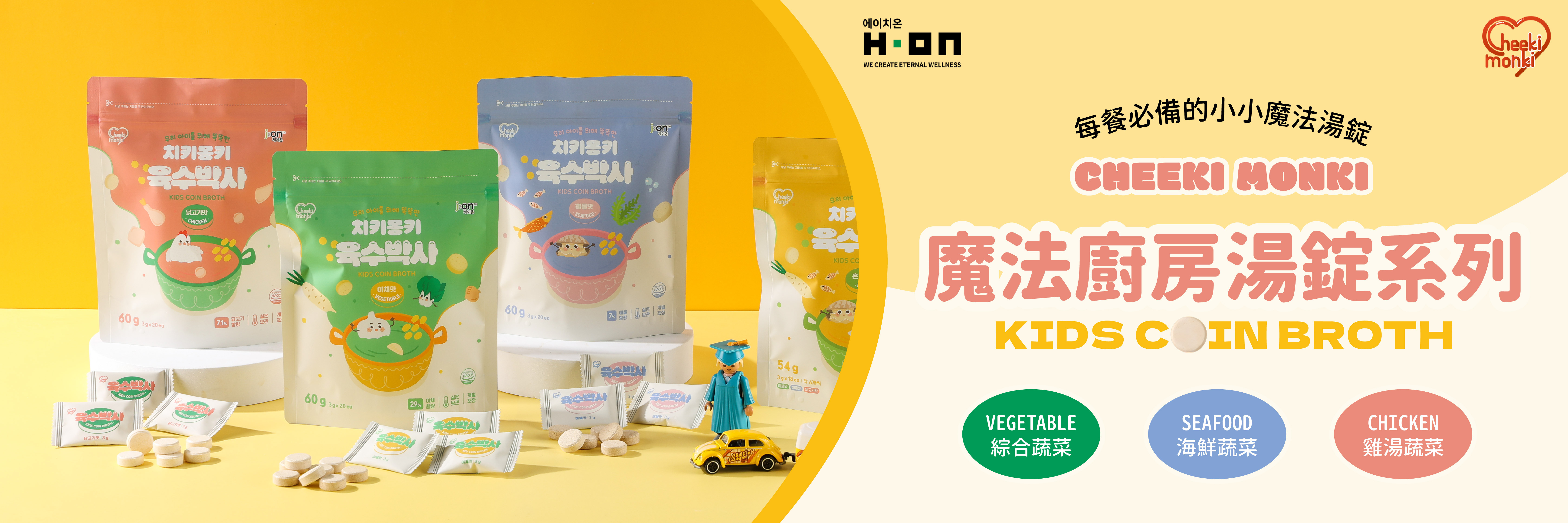 Cheeki Monki是H.ON旗下專為兒童打造的品牌,Cheeki Monki就如同一位努力做研究的博士,蘊含著希望孩子們都能健康快樂成長的心意,透過獨家技術與營養計算,最大化保留原料的營養成分,提供均衡且美味的飲食讓孩子們健康茁壯。